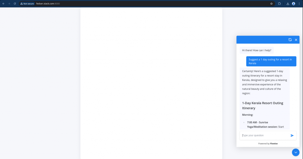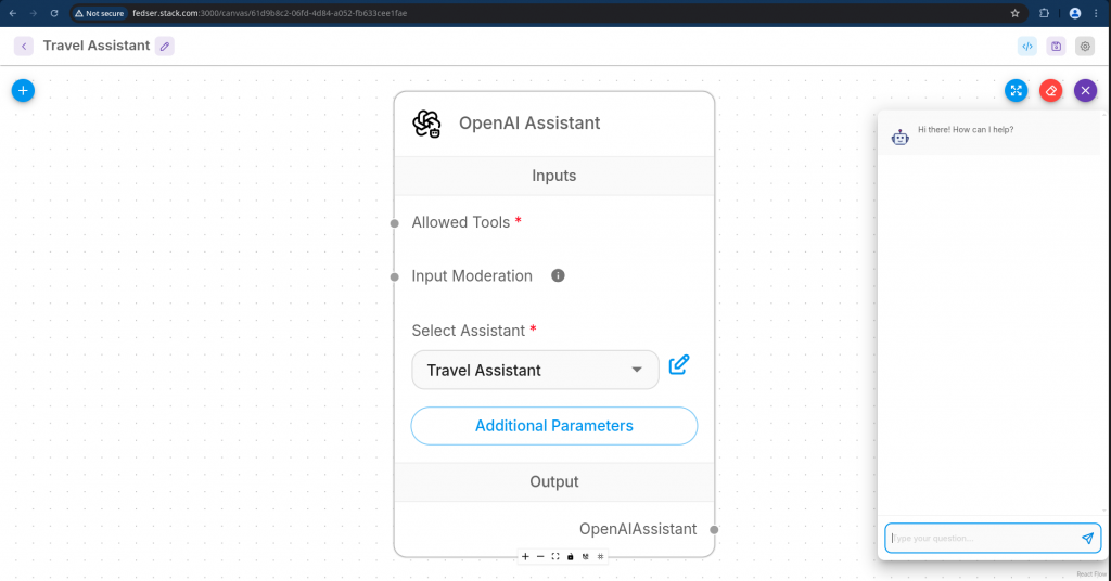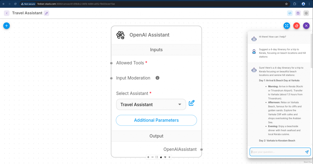 Open your “Travel Assistant” chatflow and click on the chat icon to instantiate the chat flow.