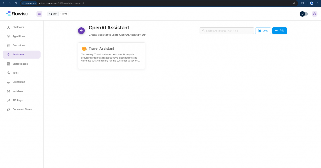Once you add your custom chat assistant. It should show in the list of OpenAI Assistants as shown below.
