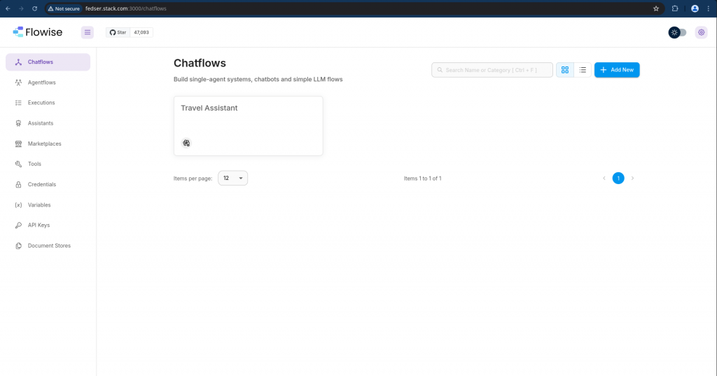 Now if you navigate to Chatflows you should be able to see your “Travel assistant” on the Chatflows page.