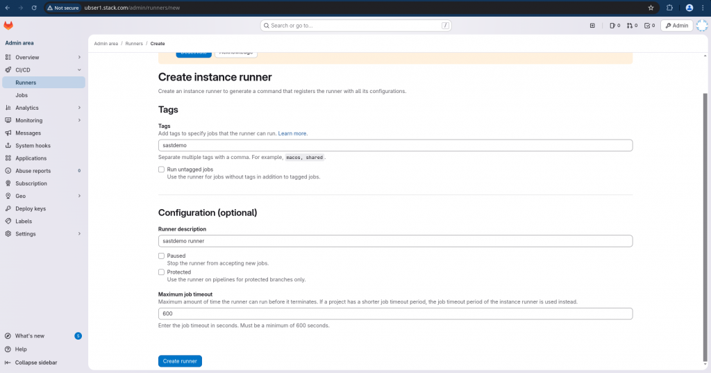 Step5: Create an Instance Runner with Runner Authentication Token