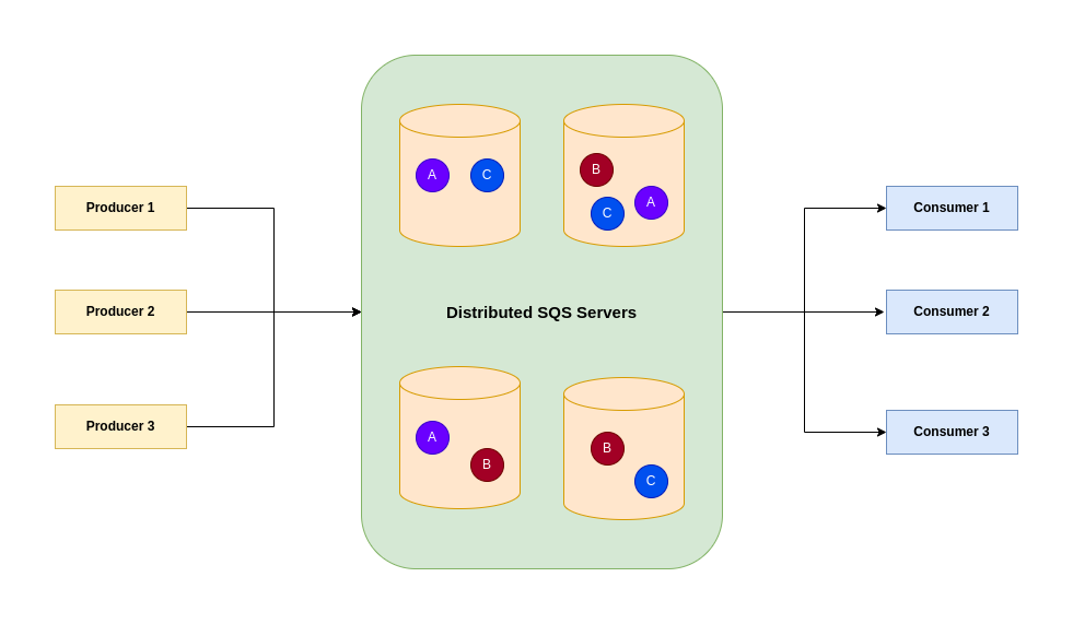 - SQS queues distributed on SQS servers